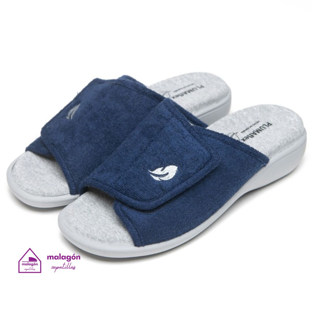 Zapatillas de casa para mujer Roal Plumaflex 14511, abiertas por delante y con velcro para un ajuste perfecto. Plantilla Plumaflex de látex extraíble, suela flexible y fabricadas en España.